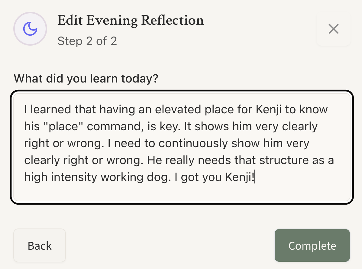 I journal about what I learn, every single day. It can be small, medium, or large. It can be whatever. And it’s self-reinforcing, I love reflecting on what I learned. It just feels so good!
