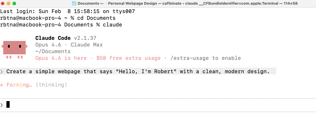 Just open Claude Code (by again, opening the terminal and typing and entering “claude”), paste the prompt, and see what happens.