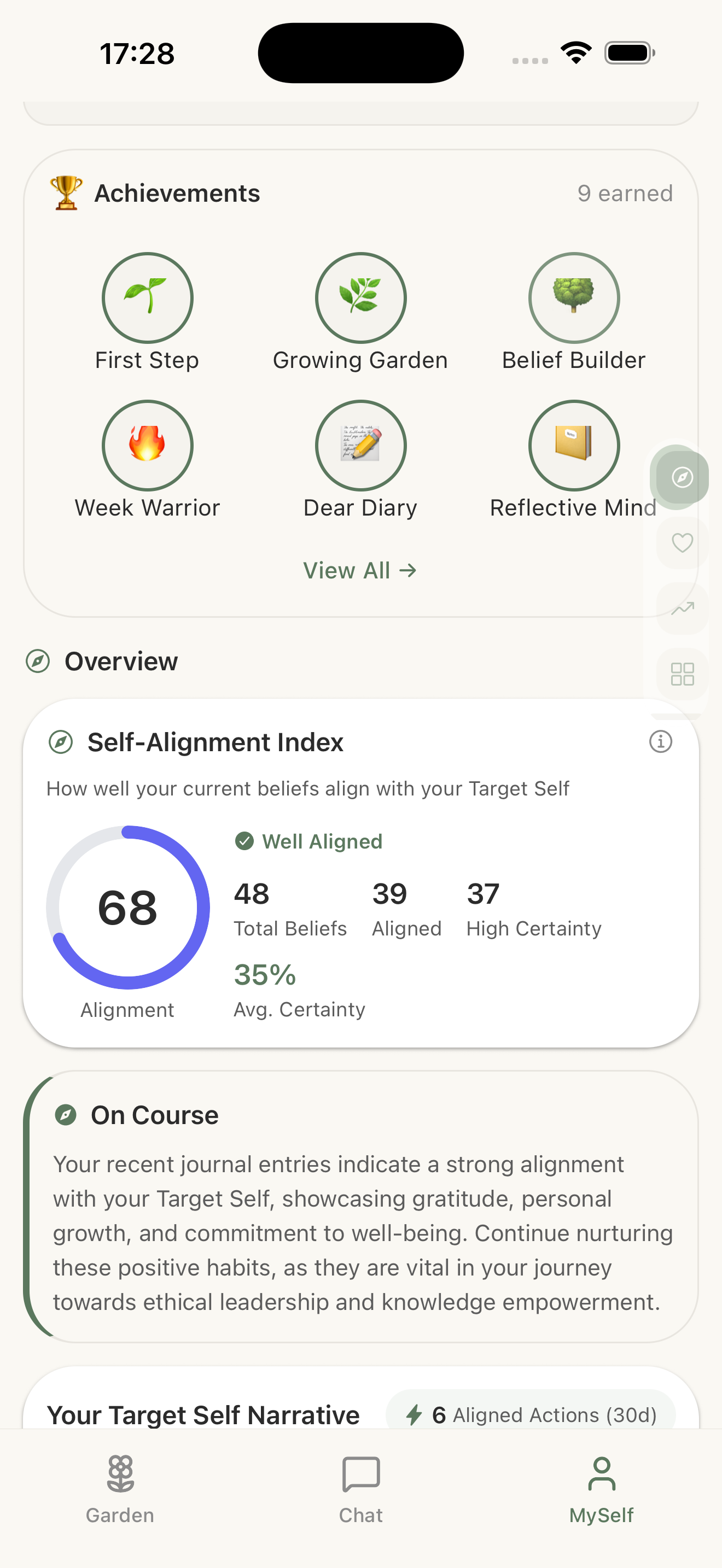 Who you’re becoming (trajectory)—based on your recent patterns, not a questionnaire from a decade ago.